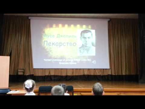 Ученики нашего класса Бурова Анна, Ворозлов Михаил и Власова Арина приняли участие в областном конкурсе на лучшее чтение стихов татарского поэта Мусы Джалиля. На школьном этапе, который проходил сегодня в актовом зале школы, победу среди учащихся 1-4 классов одержала Власова Арина. Она представила на суд жюри стихотворение "Лекарство". Мы от всей души поздравляем всех с отличным выступлением! Молодцы!!! Хотя все ребята выступали с температурой, но их очень приятно было слушать. Судите сами!